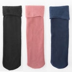 - 【3足セット】裏起毛ソックス 靴下 冷え取り靴下(ブラック+...