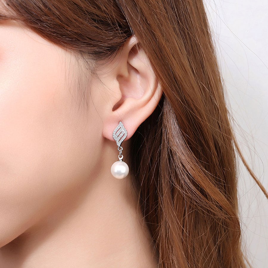 【シルバー】エレガントな揺れるパールピアス | シンプルながら存在感ある一粒揺れるパールピアス フォーマルにも普段使いにも