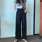 - 【ブラック】ウエストゴム ラメプリーツワイドパンツ