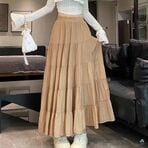 - 【カーキ】ウエストゴム ラメプリーツワイドパンツ