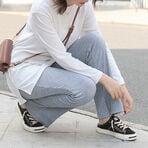 - 【ライトグレー/フラットタイプ】 ウエストゴム フレアリブパ...