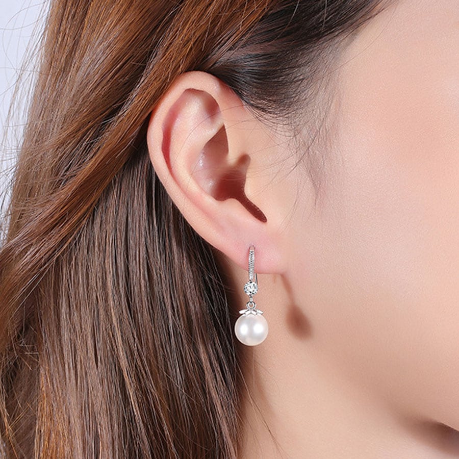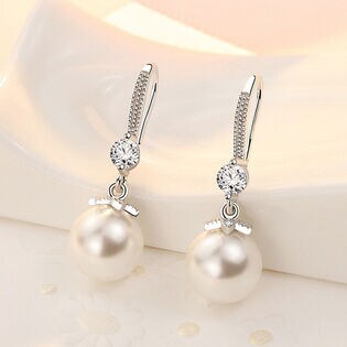【シルバー】ストーン×一粒パールのフックピアス | シックなデザインでデートやパーティーイベント、フォーマルシーンにも着用出来ます