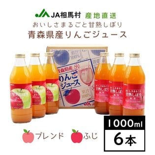 - 【2種詰合せ1L×6本】JA相馬村おいしさまるごと甘熟しぼり(ふじ・ブレンド各3本)