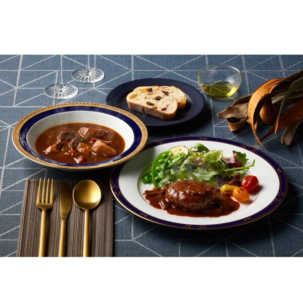 ソテーオニオンの旨味とトマトペーストの優しい酸味や赤ワインの風味が引き立てるソースに、大き目にカットした具材を合わせた奥深い味わいのビーフシチューと、コク・うま味・程よい酸味が調和されたデミグラスソースが特徴のハンバーグとのセットです。湯せんするだけで本格的な味をお楽しみいただけます。