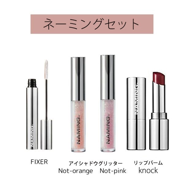 【韓国コスメ/NAMING.(ネーミング)】コスメ4点セットC | (パッケージなし)FIXER, アイグリッター2色、リップバームのお得な4点セット