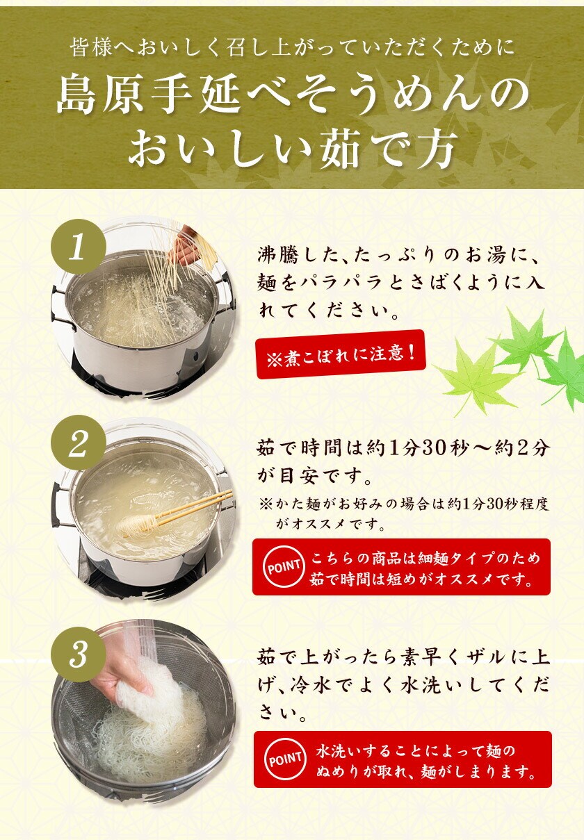 ・お召し上がり方:沸騰したたっぷりめのお湯で1分半-2分ほど茹で、素早くざるに引き上げ冷水(できれば氷水)で良く水洗いをしてから、麺つゆ等でお召し上がりください。