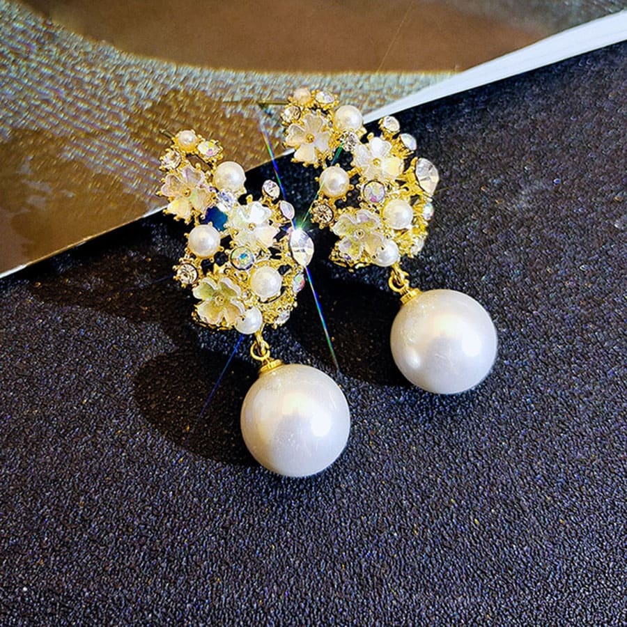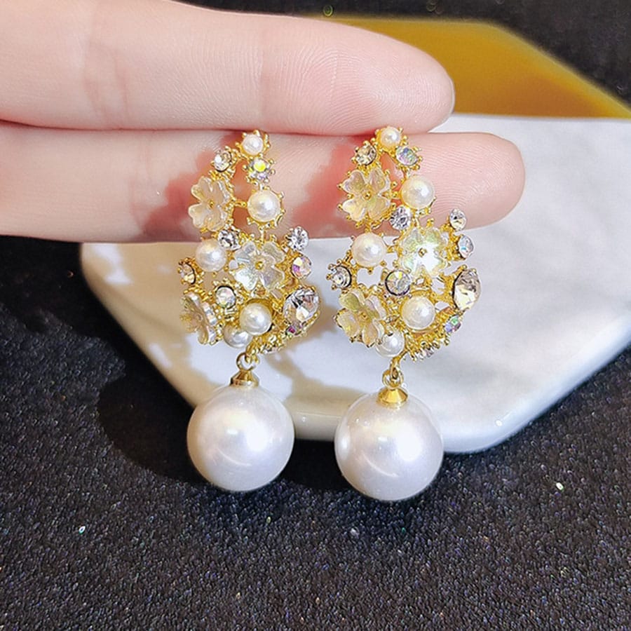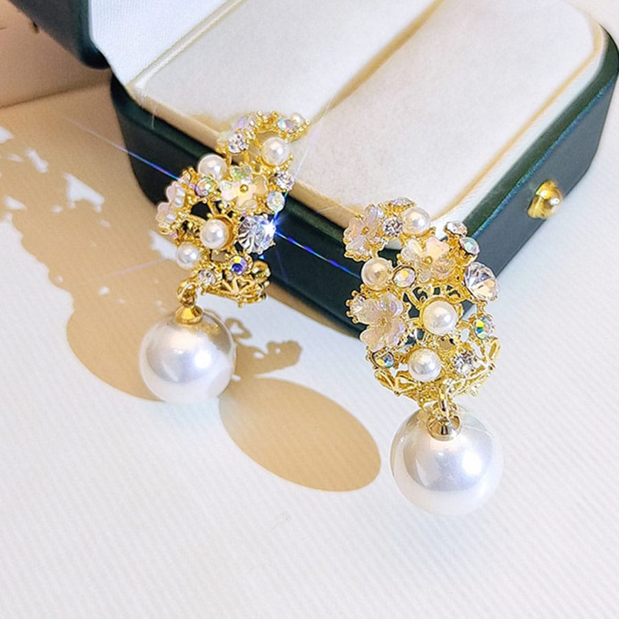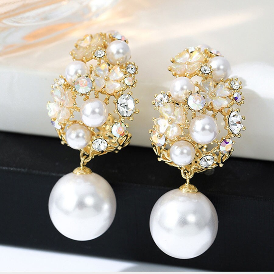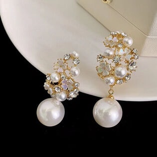 【ホワイト】キラキラパールピアス | パールやストーンがちりばめられた華やかなピアス
