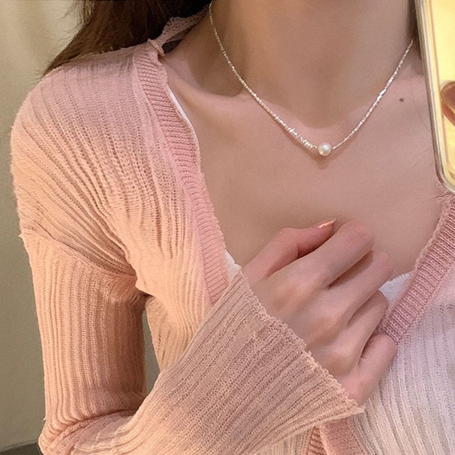人気のフェイクパール可愛いデザインのネックレス。