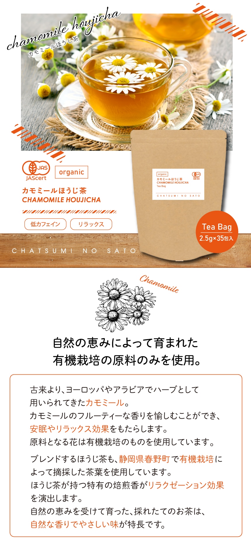 【2.5g×35包×5パック】 茶つみの里 ≪有機≫ カモミールほうじ茶 糸付き ティーバッグ | 低カフェインでリラクゼーション効果
