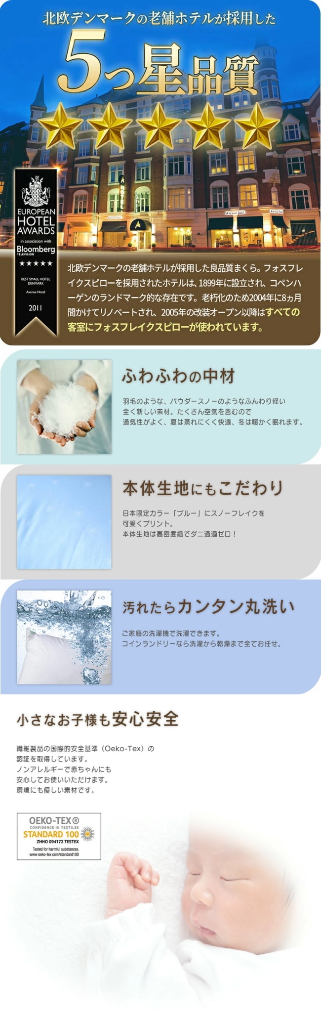デンマークで発明された特許素材を使用した、フォスフレイクス枕 クラシック&ロイヤーレ。