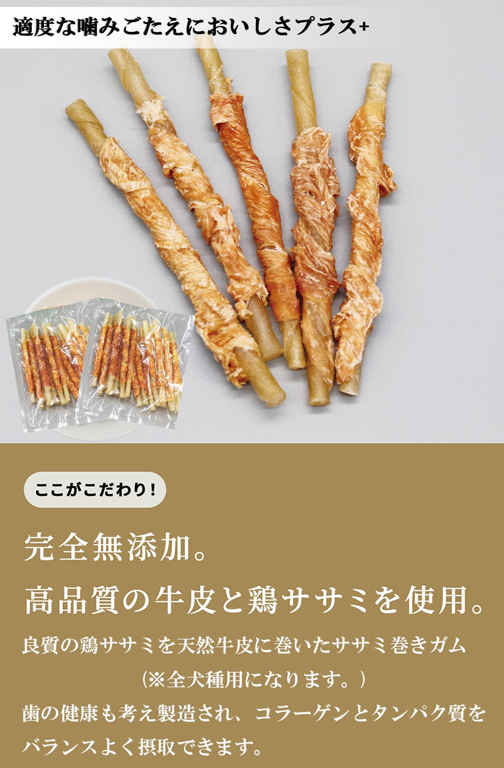 【31本入り×1パック】ささみ巻きガム 全犬種用 ITFC | 全犬種用。完全無添加で高品質の牛皮と鶏ササミ使用
