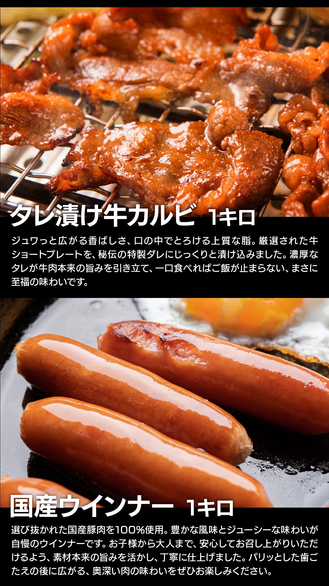 【計2kg】牛バラカルビ&純国産ポークウインナー | 秘伝特製ダレに漬け込んだ牛バラキングカルビ&国産豚肉100%の贅沢な粗挽きポークウインナー