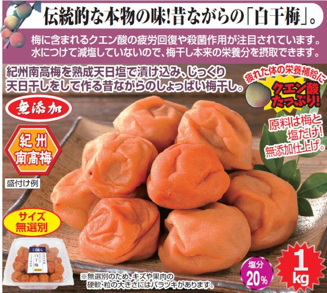 【1kg】紀州南高梅 無添加 白干梅 | 伝統的な本物の味!昔ながらの「白干梅」。