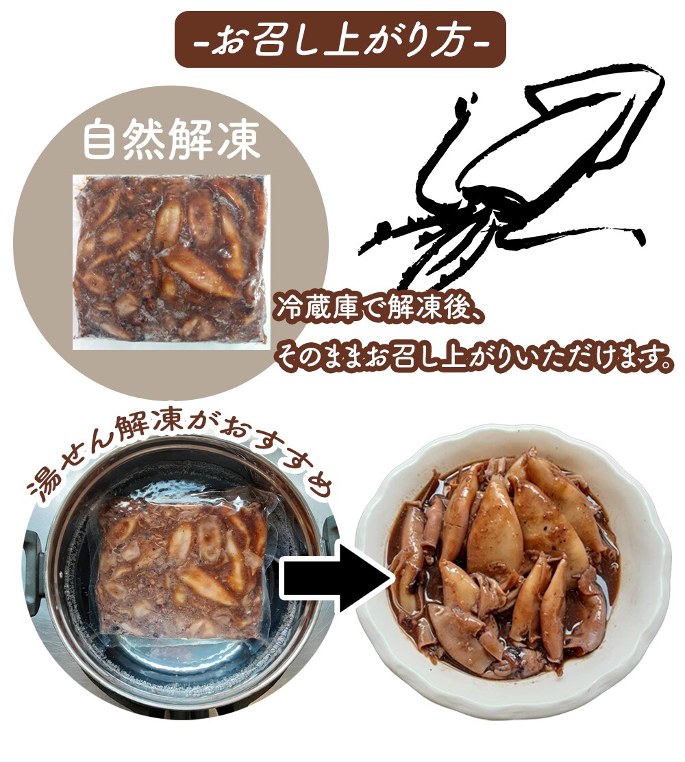 【500g×1P】北海道産ヤリイカのうま煮 | 新鮮なヤリイカを醤油で甘辛く炊き上げています。解凍してそのまま食卓へ!