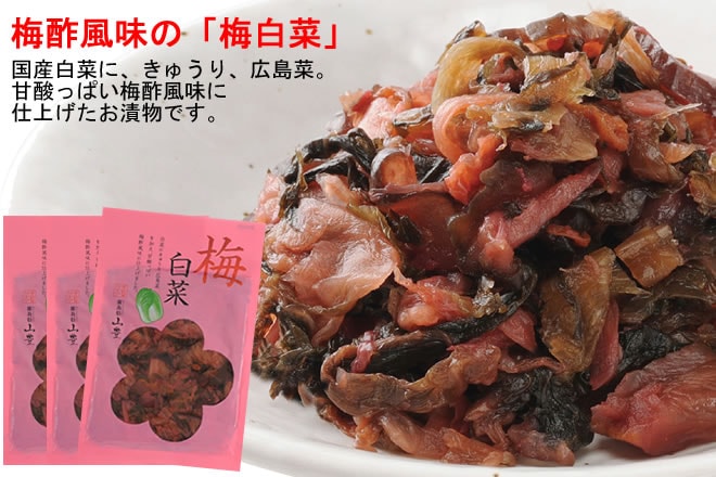 - 【2袋】日本三大漬菜・広島菜のお漬物 「梅白菜」国産白菜にきゅうり、広島菜。甘酸っぱい梅酢風味仕上げ