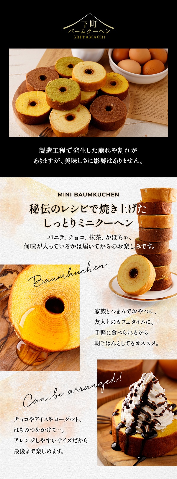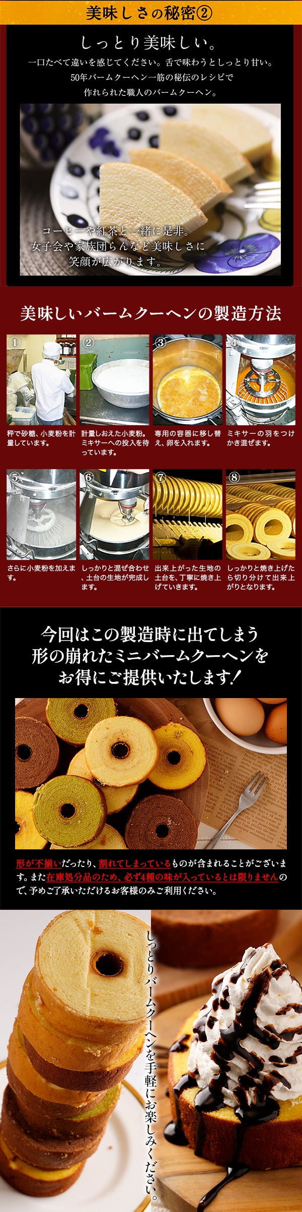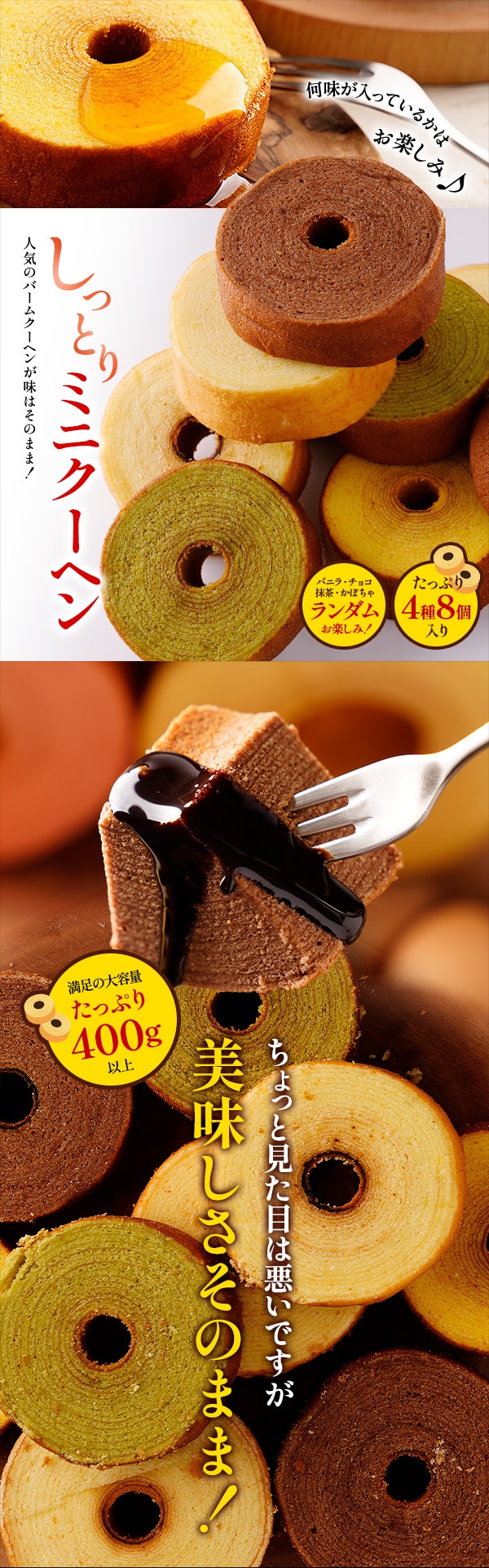 - おもいきり食べられる下町バームクーヘンの秘伝のレシピで焼き上げたしっとりミニクーヘン!400g以上の超ボリューム!!