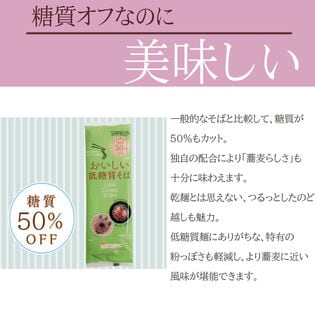 「麺らしさ」をのこしつつ、一般的なそばと比較して糖質を50%カット。