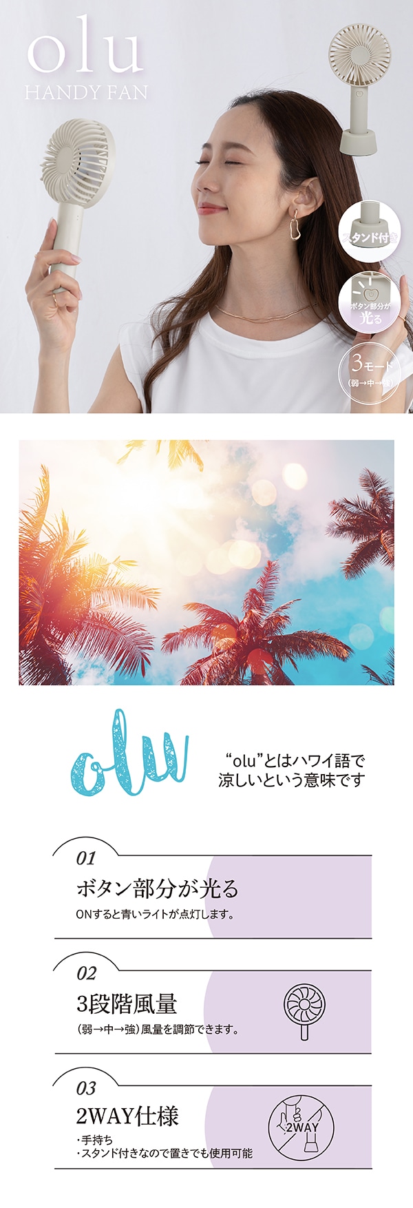 【ベージュ】oluハンディファン | 「olu」とはハワイ語で涼しいという意味です