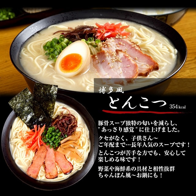 【とんこつ味】:(一部に小麦・大豆・ごま・豚肉・鶏肉を含む)※その他、原材料をご確認下さい。