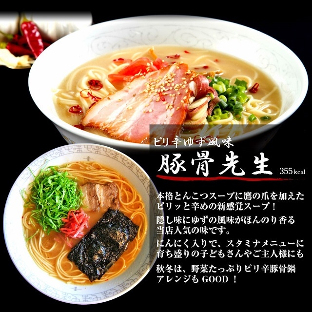 - 【3種6人前】本場九州とんこつラーメン人気3種セット!(とんこつ味、九州男児味、ピリ辛豚骨)