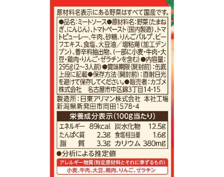 - カゴメ 国産野菜で作ったミートソース 295g×6缶