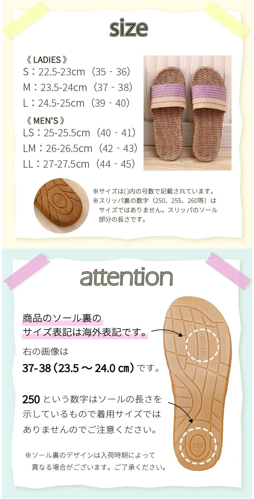 ■スリッパ裏の数字(250、255、260等)はサイズではありません。