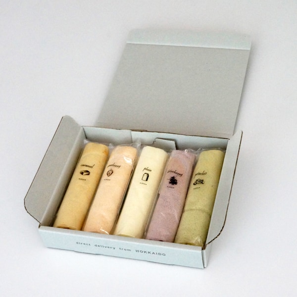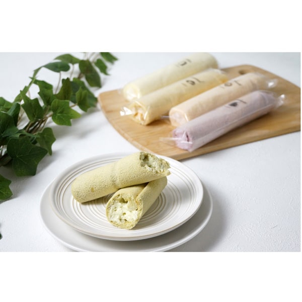 ミルク風味をしっかりと感じる5種類のクリームをふわふわ食感のスポンジで巻き上げ、スティック状のロールケーキに仕上げました。ワンハンドで食べられるので、ティータイムはもちろん差し入れや外出先でのひとときにおすすめです。