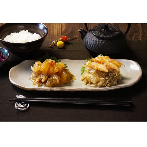 昆布とイカで仕上げた北海道の郷土料理「松前漬」に数の子を加えた「数の子松前漬」とカニを入れた「かに入松前漬け」のセットです。