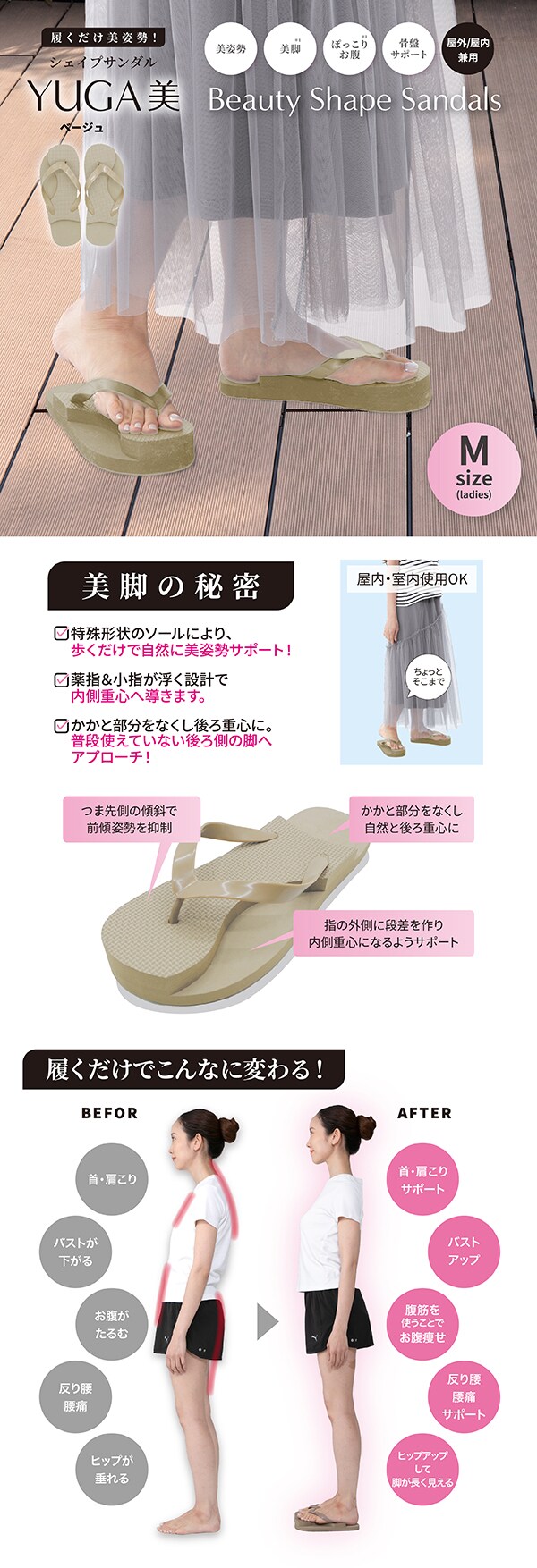 【 レディース/ベージュ/M】YUGA-美シェイプサンダル | 履くだけ美姿勢