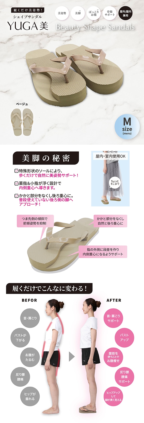 【メンズ/ベージュ/M】YUGA-美シェイプサンダル | 履くだけ美姿勢