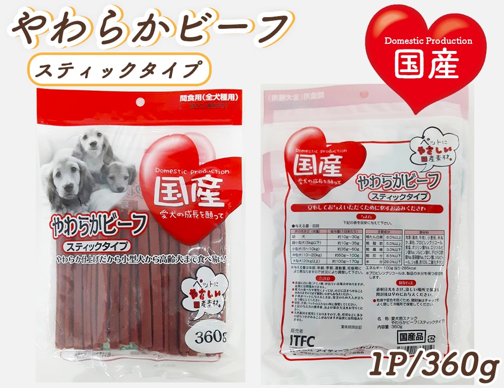 - 【360g】やわらかビーフ スティックタイプ 全犬種用 ITFC