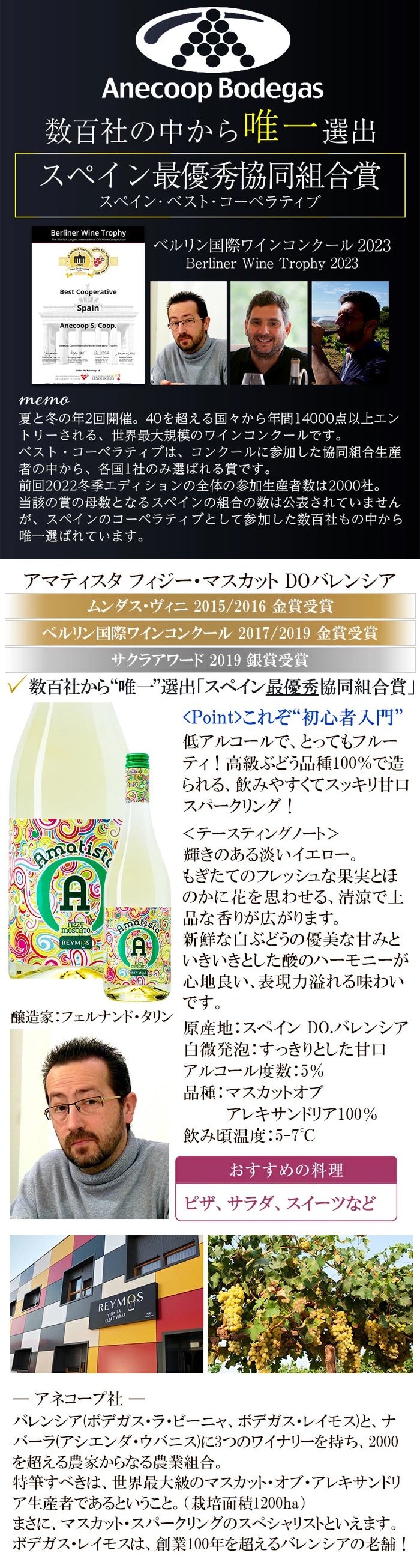 (1)アマティスタ フィジー・マスカット DO.バレンシア 750ml 3本 AL度数 5.0度
