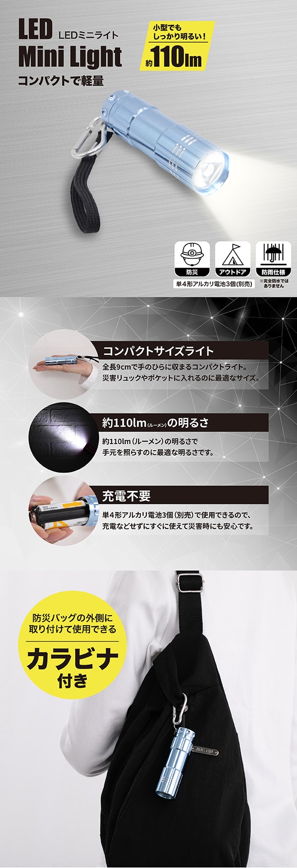 【ライトブルー】LEDminiライトカラビナ付き | 小型でもしっかり明るい 約110lm