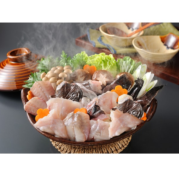 あんこう(加熱用)[アンコウ(山口県産)]、彦島みそ[裸麦、大麦、米、大豆、食塩/酒精、調味料(アミノ酸)、(一部に大豆を含む)]、鍋だし[しょうゆ、食塩、砂糖、こんぶエキス、かつおぶし、かつおエキス/調味料(アミノ酸等)、(一部に小麦・大豆を含む)]