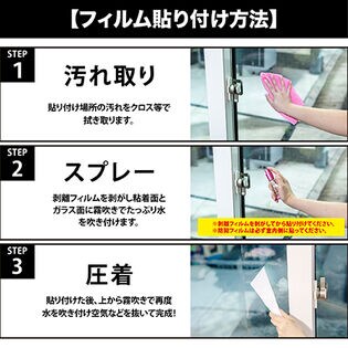 剥離フィルムを剥がし、粘着面とガラス面に霧吹きでたっぷり水を吹き付けます。