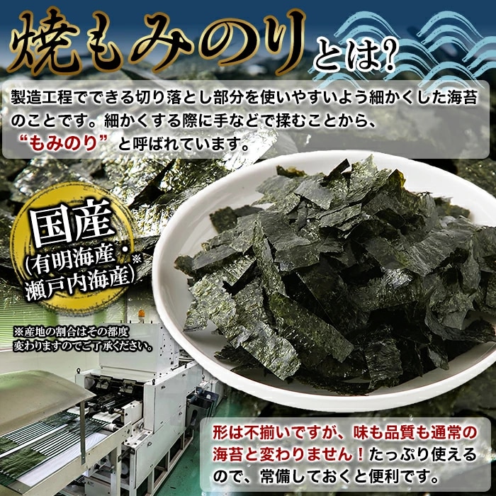 【180g】国産焼もみのり<有明海産・瀬戸内海産>大容量切り落とし | パリッと焼き上げた海の香りたっぷりの国産海苔は色々なお料理に使えて便利!毎日の献立に活躍♪