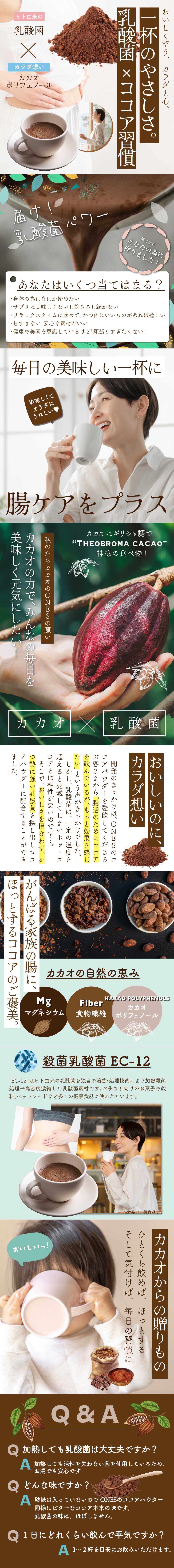 ・原材料/材質/素材:ココアパウダー(ココアバター22~24%)(マレーシア製造)、全粉乳(乳成分を含 む)、粉末乳酸菌(殺菌)