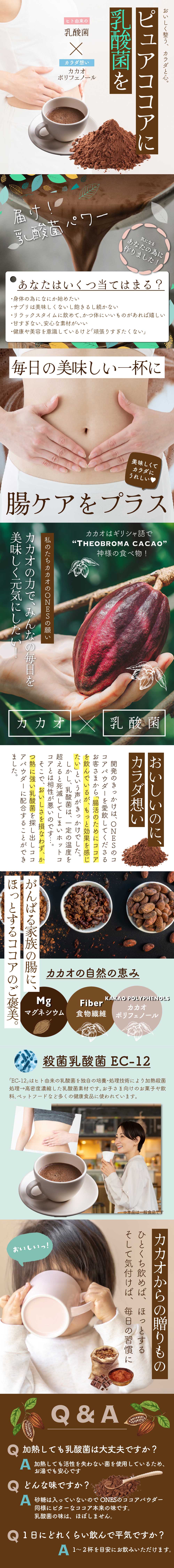 ・原材料/材質/素材:ココアパウダー(ココアバター22~24%)(マレーシア製造)、全粉乳(乳成分を含 む)、粉末乳酸菌(殺菌)