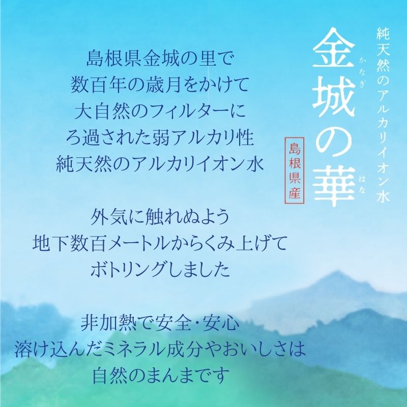 『金城のアルカリ天然水 』は、品質・pH値・原水の種類・殺菌方法において、唯一差別化できる価値訴求型のミネラルウォーターです!