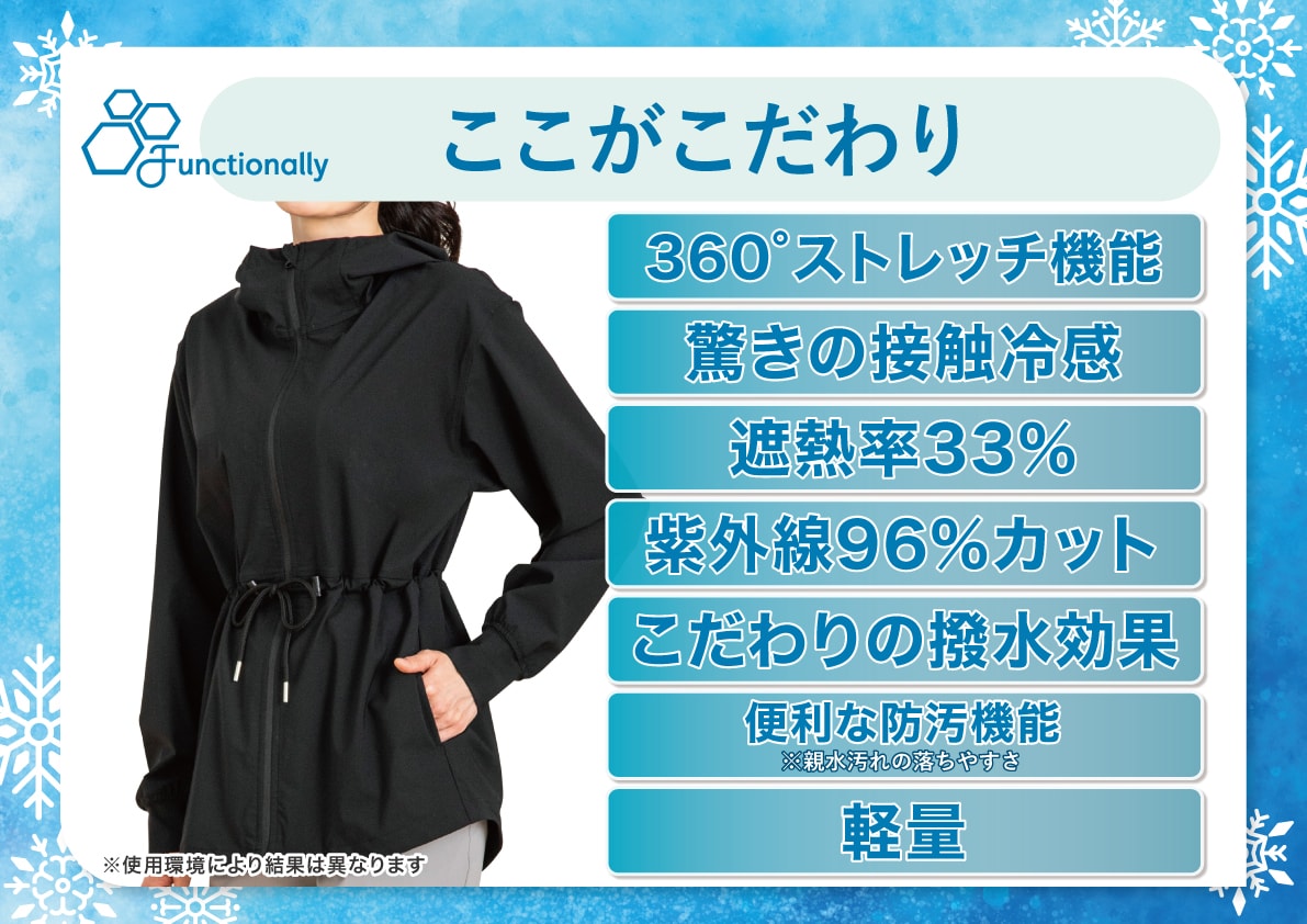 年々増えていく夏日の猛暑の時期を快適に過ごせるよう接触冷感機能を搭載など、嬉しい機能がいっぱいついているパーカーです。