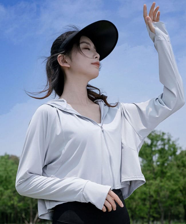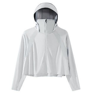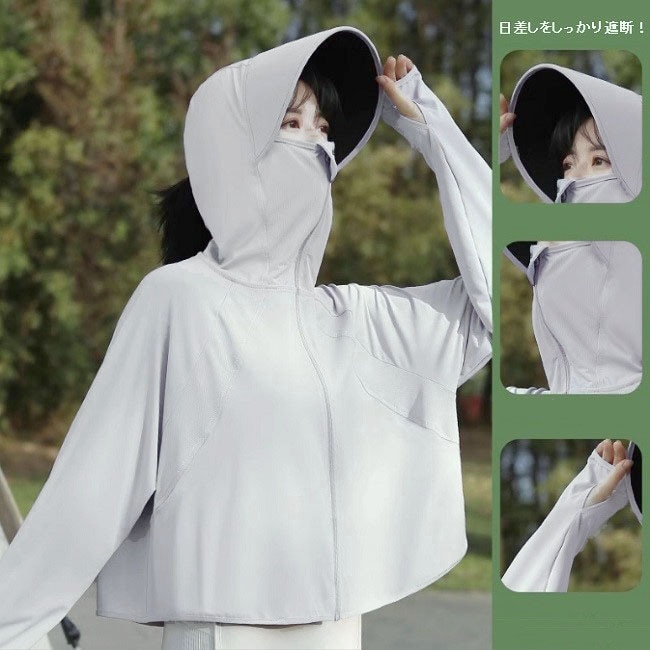 - 【ライトグレー】日焼け防止、日除けフード付き冷感パーカー
