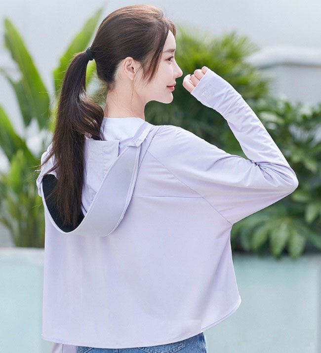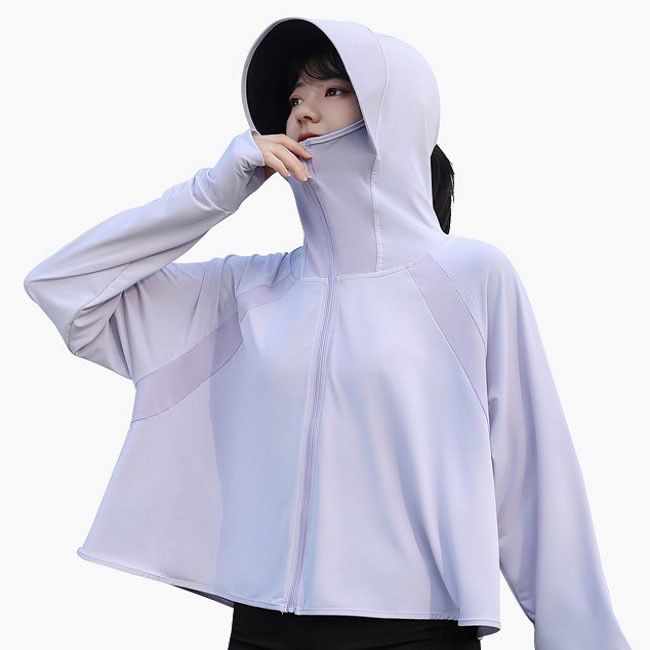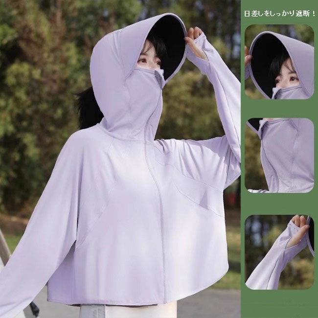 - 【ライトパープル】日焼け防止、日除けフード付き冷感パーカー