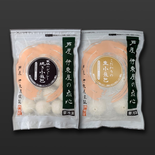 - 黒豚のジューシー焼き小籠包(18g×15)×1、こだわりの生小籠包(30g×6)×1 ※タレは付いておりません