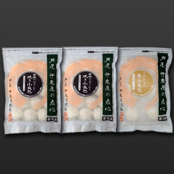 - 黒豚のジューシー焼き小籠包(18g×15)×2、こだわりの生小籠包(30g×6)×1 ※タレは付いておりません