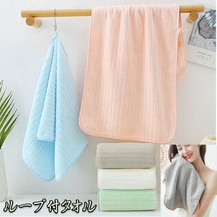 【ライトグリーン】ループ付きフェイスタオル | ループ紐が付いているので、フックに引っ掛けられる!