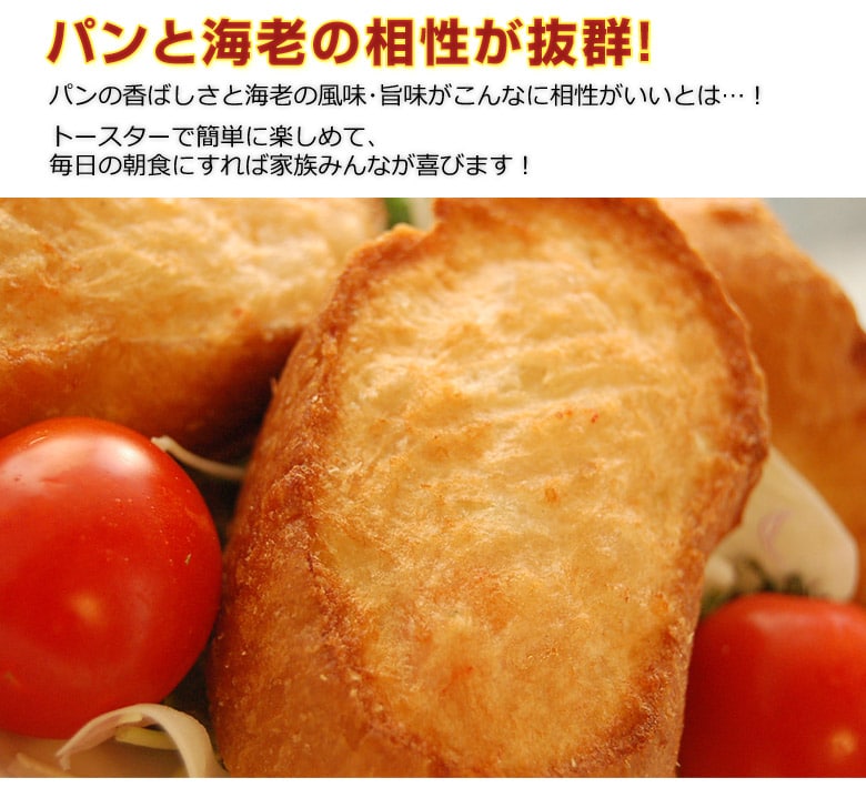 シンプルながら間違いのない美味しさで、サクサクフランスパンに、プリッと歯ごたえある、切り身も入った海老ペーストが、お口の中で絶妙ハーモニーを奏でます。