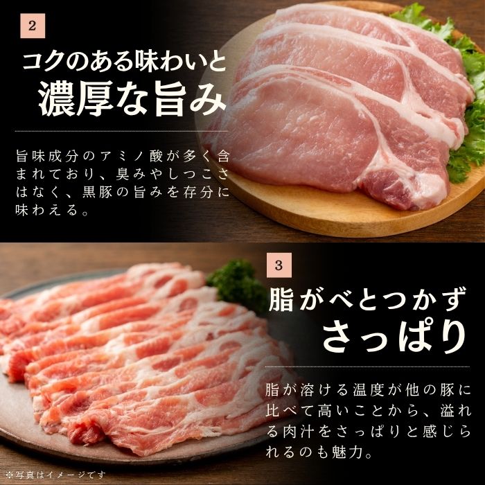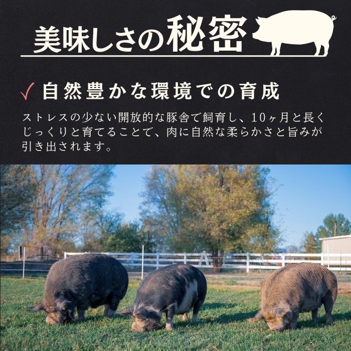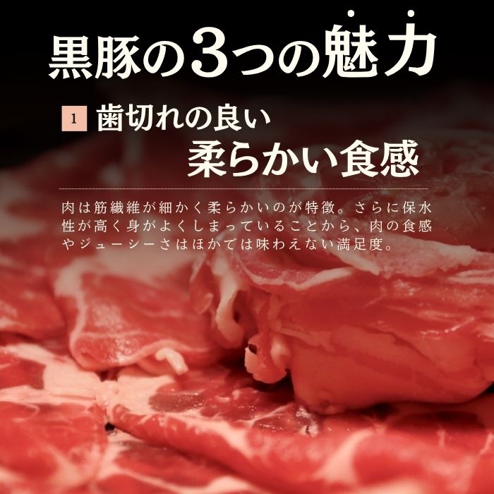●豚肉らしいコクは牛肉に負けないと言われるほど豊かな旨みがあり、黒豚本来の深い風味・コクを味わえます。