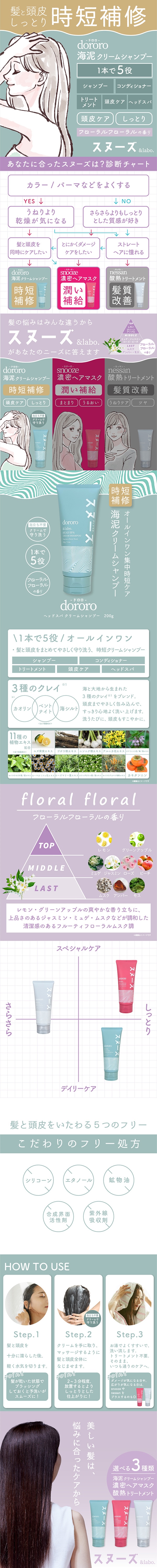 【3本セット】&labo. dororo ヘッドスパクリームシャンプー フローラルフローラルの香り | 【髪と頭皮しっとり集中補修】1本で5役の海泥クリームシャンプー