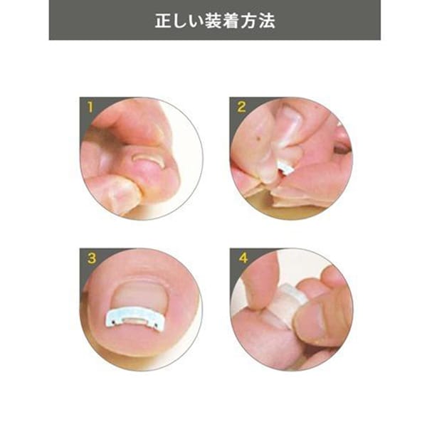 爪先につけるだけのカンタン巻き爪対策。巻いた爪を広げてくれる、痛い巻き爪対策に。爪先につけるだけで、形状記憶合金が巻いた爪を広げてくれるクリップ。世界初、超弾性形状記憶合金を採用。爪先につけると一定の力を維持しながら、爪が広がるまで力を加え続けます。爪の高度な変形にも対応可能。サイズは幅の違う3種類。