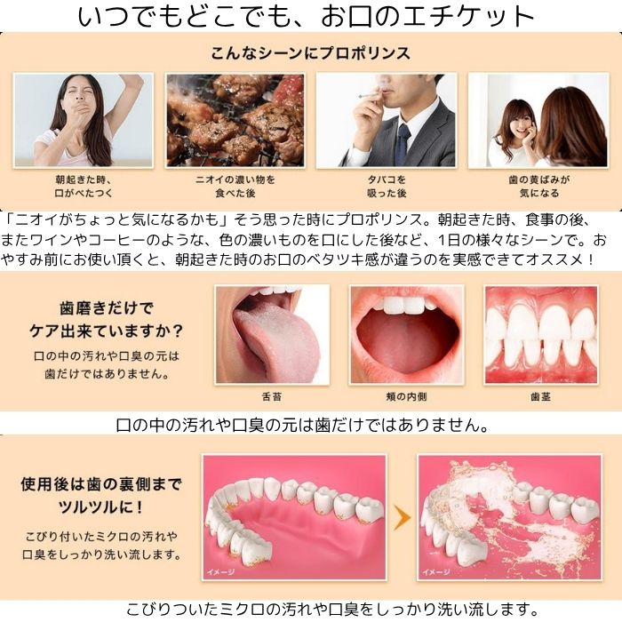 わずか約20秒ほどくちゅくちゅして吐き出すと、口の中の汚れが黒い固まりになって出てくる新感覚マウスウォッシュ。配合成分チャ葉エキスが、口臭の元になるタンパク質汚れを固めて出すので、口の中の汚れが目で見て確認できます。さらにプロポリスエキス、リンゴ酸、キシリトールを配合して、気になる口臭や汚れをしっかりケア。